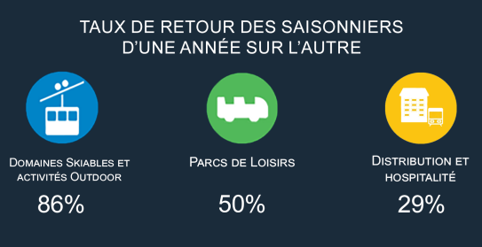 Avec un fort taux de retour de près d'un collaborateur sur deux sur les Parcs de loisirs et près de 9 collaborateurs sur dix sur les Domaines de montagne, cette volonté affirmée de fidélisation, est un vecteur d’engagement et contribue largement à la Très Grande Satisfaction Clients. Il permet également aux collaborateurs de progresser, de développer leurs compétences et de gagner en responsabilité d’une saison à l’autre.