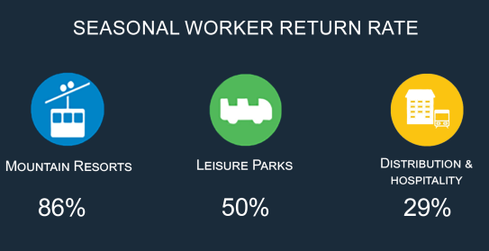 As seen in the high return rates of 49% for leisure parks and 88% for ski areas, this emphasis on loyalty fosters commitment and contributes strongly to Very High Customer Satisfaction. This policy also helps employees further their careers by developing their skills and taking on more responsibilities from one season to the next.