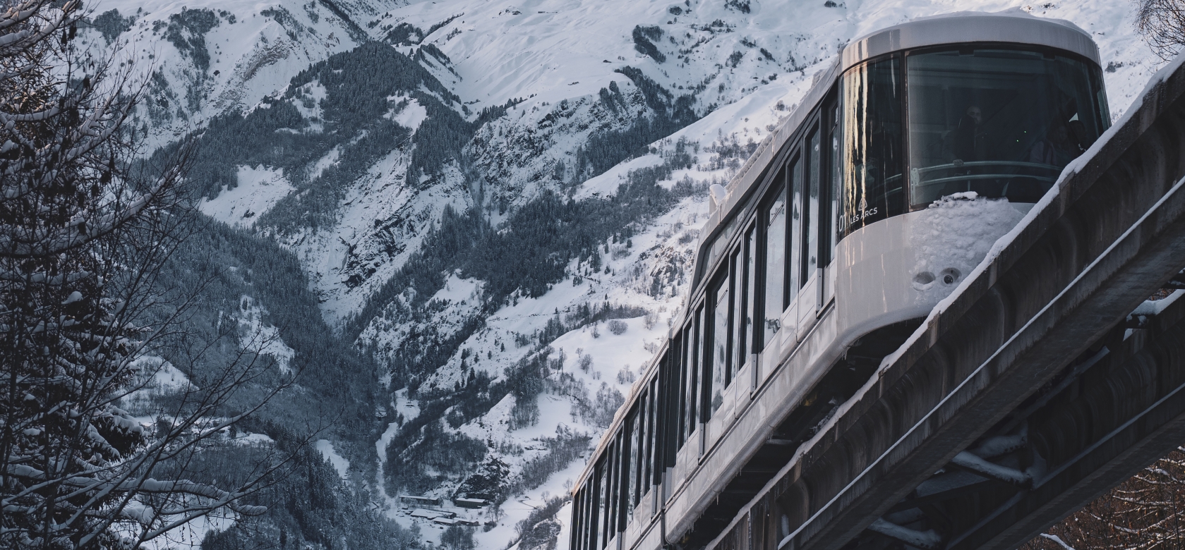 Le domaine des Arcs / Peisey-Vallandry a su se doter très tôt des moyens nécessaires pour assurer une circulation fluide à ses visiteurs. Le funiculaire entre Bourg-Saint-Maurice et Arcs 1600 offre une accessibilité directe depuis la gare SNCF de la capitale de Haute-Tarentaise.